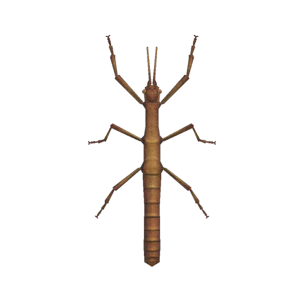 "The walking stick looks just like a twig, does it not? Hoo! It even has knots like a real twig would! These bashful bugs mimic plants in this way to hide from predators. A noble goal, you might say. But though the deceptive wretches fool some, they do not fool me! I see these bugs for what they are... Monsters, plain and simple! I say, did you know that walking sticks can grow to two feet long?! Imagine running into one! Surely I would faint."